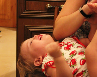 Ищет кнопку у каждой игрушки! Просекла тайну носа, пуза, ушей и лап ))))